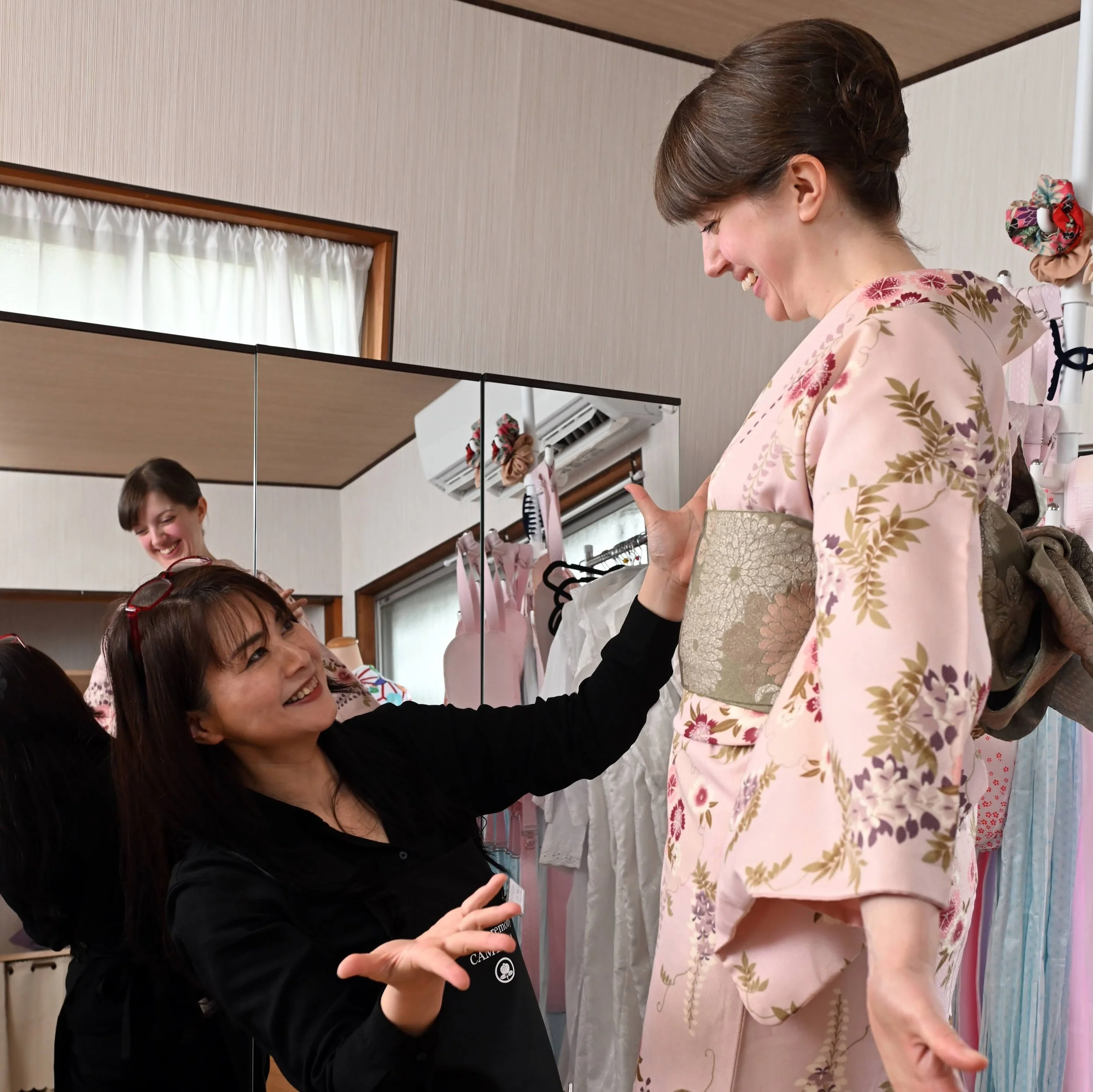 Although we have a large selection of kimono in many different sizes, we sadly cannot dress guests taller than 200cm (6.6 ft) or those with hips wider than 150cm (59 inches).